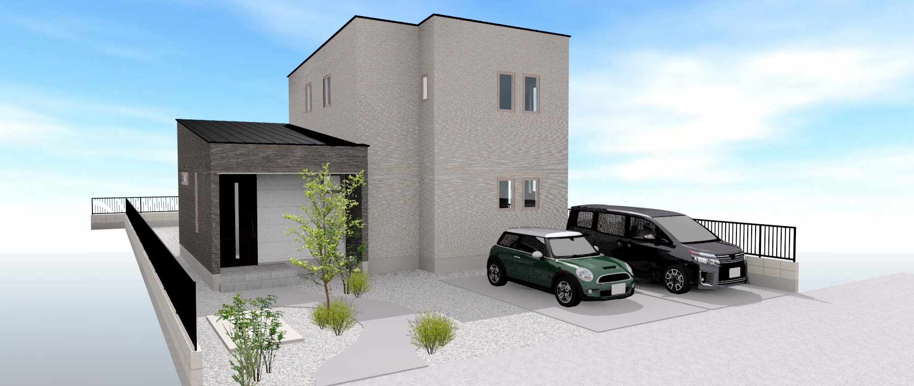 建物の大きさや地形にもよりますが、車を2台停めるのであれば最低でも75坪以上、3台停めるのであれば80坪以上あれば概ね大丈夫です。