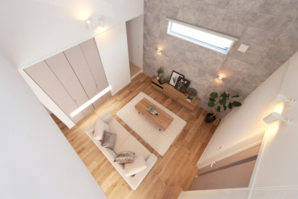 - 視線が抜ける開放的な吹き抜けリビング