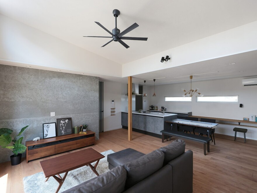 20帖のリビングは、大きい家具を配置してもゆとりのある広さです。