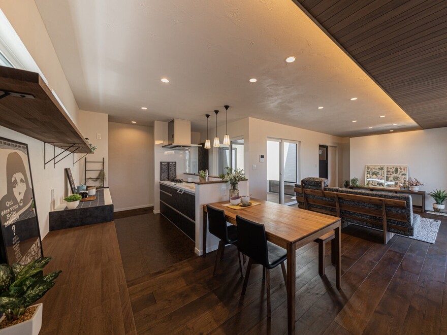 ダイニングとリビングのスペースを分けるレイアウトでは、メリハリのある空間をつくれます。