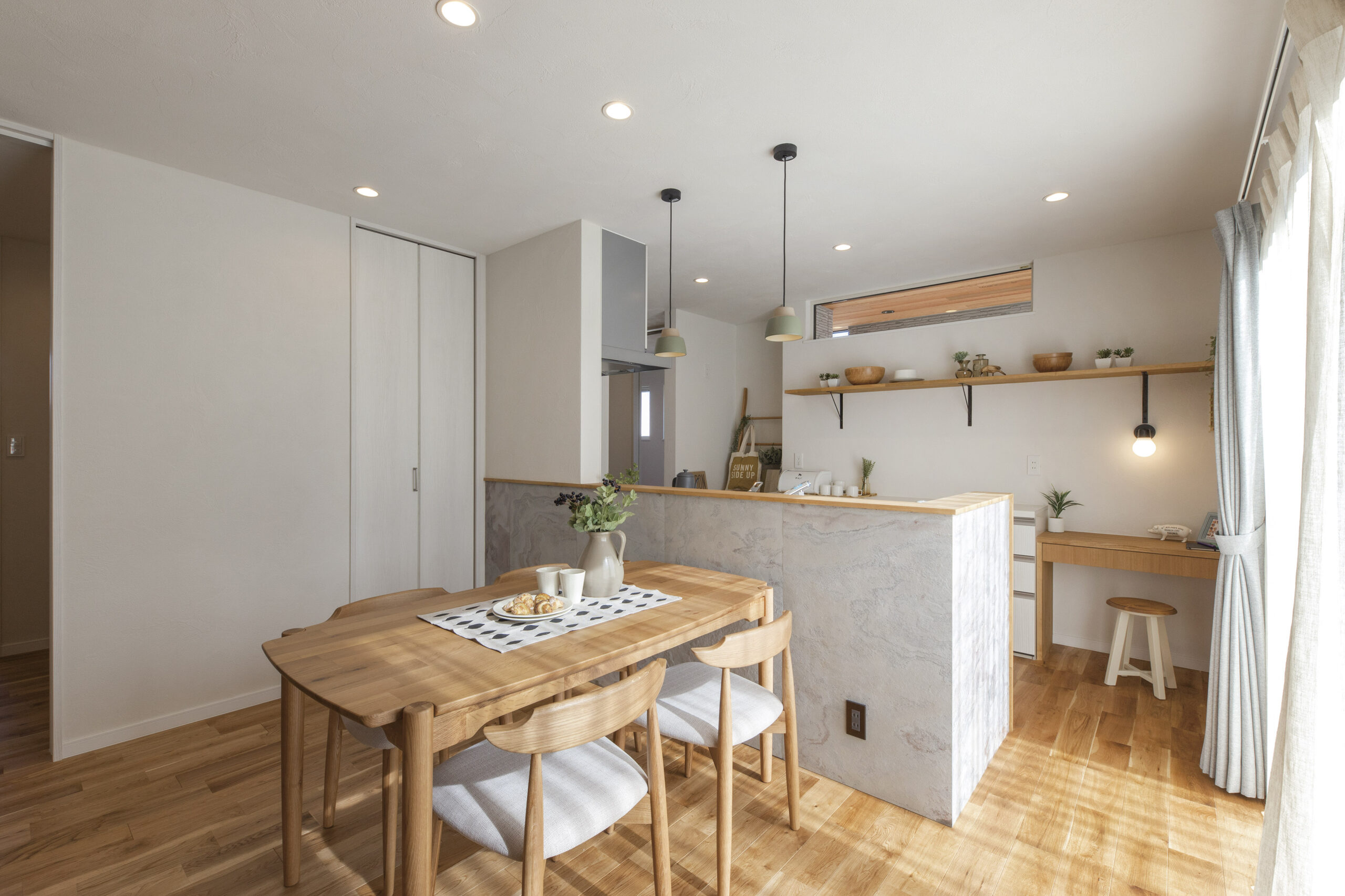 - リビング内に設けた造作デスクスペース