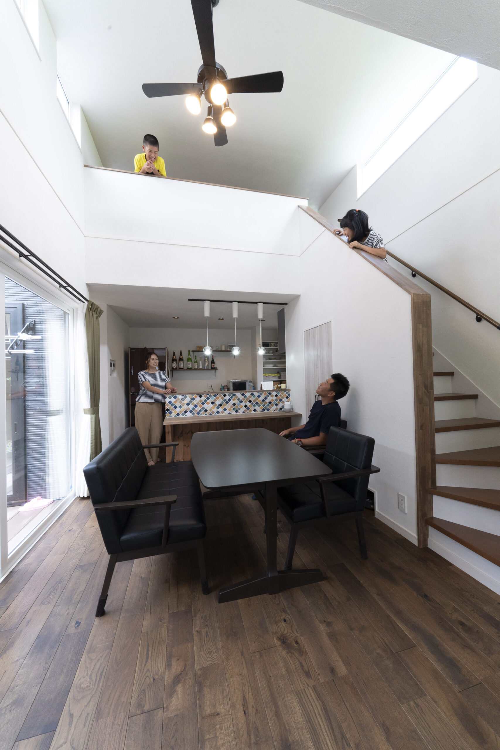 - 開放感のある吹き抜けリビング