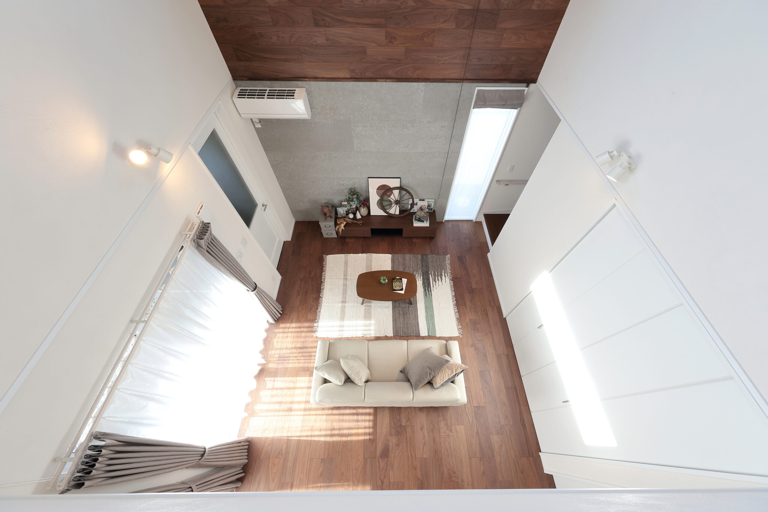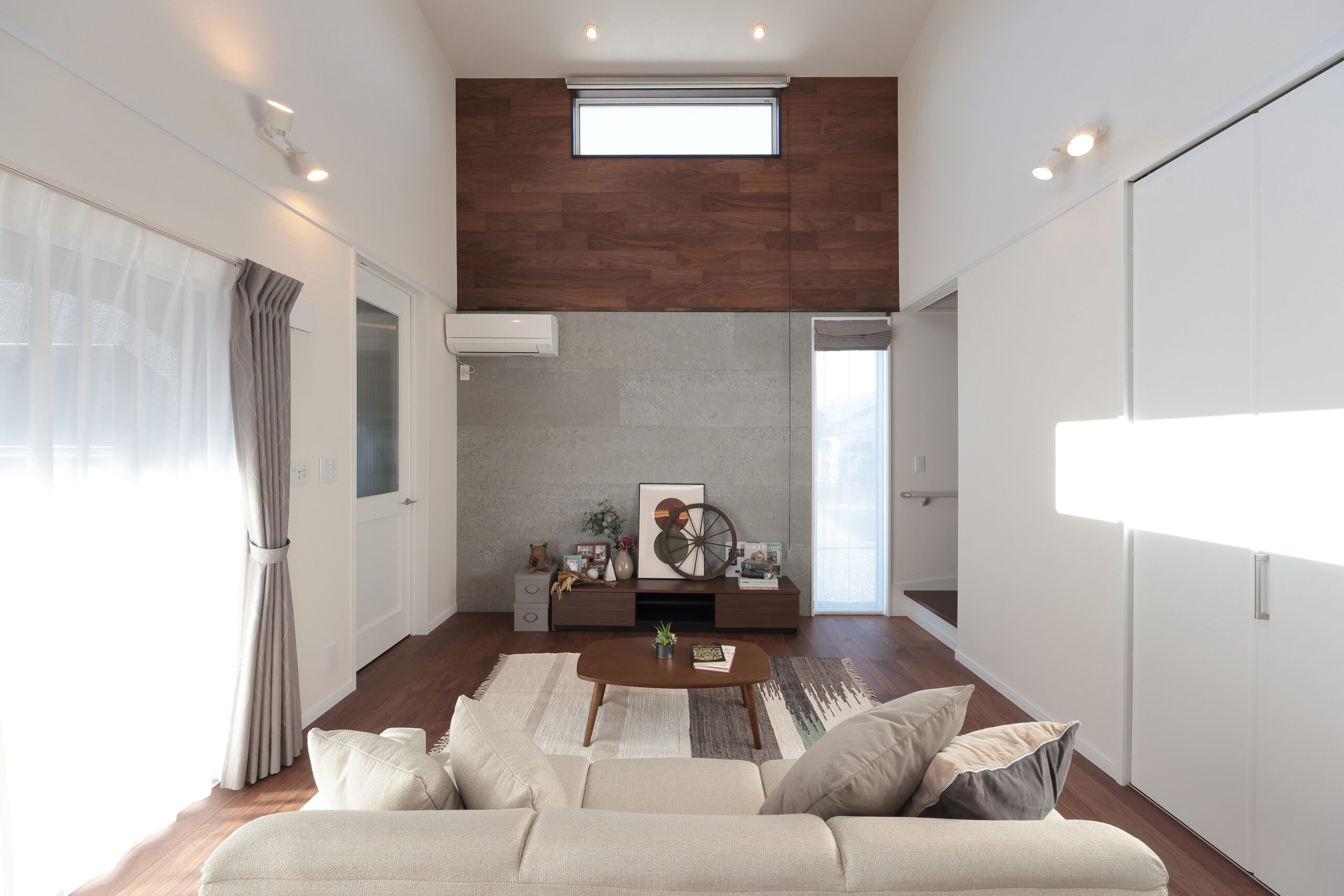 - 「吹き抜け×高窓」で陽がたっぷり差し込むリビング