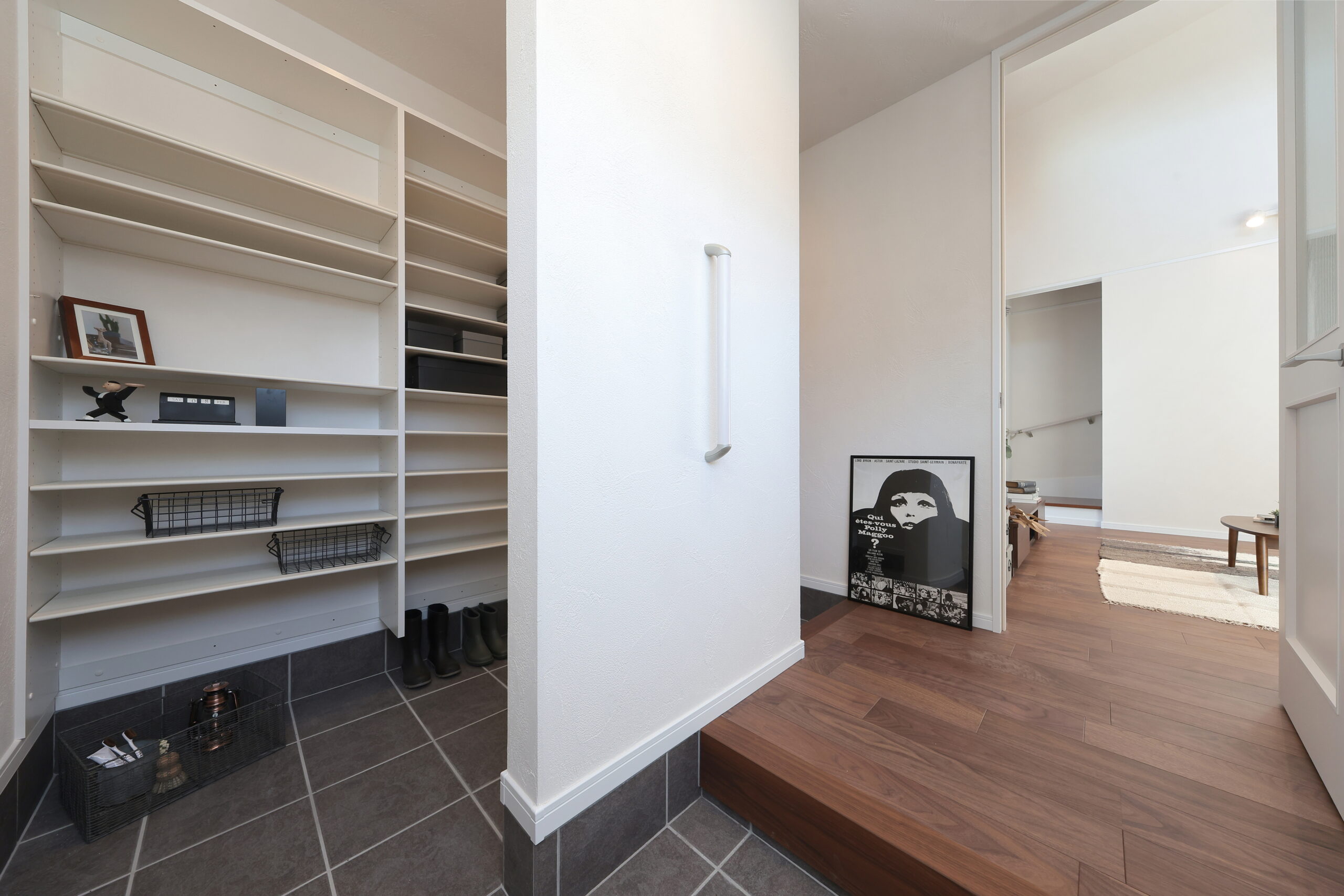 - ベビーカーやゴルフバッグなども置ける広々した2WAYの玄関収納